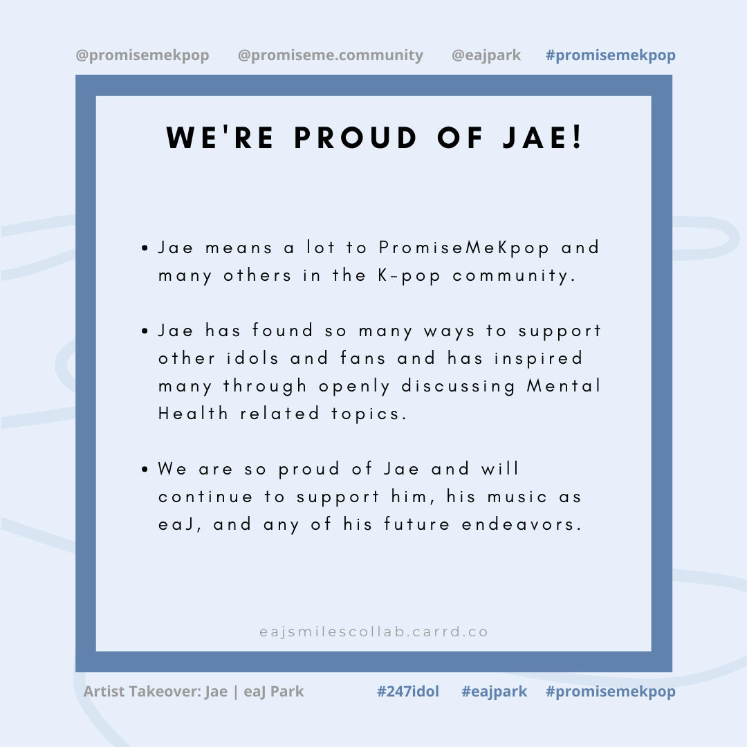 A: eaJ Smiles. We want to let Jae (eaJ) know he's not alone and we respect him!Q: When is the deadline?